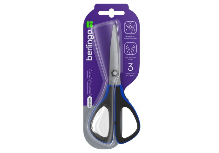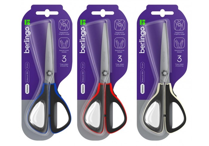 Ножницы Berlingo "Easycut 300" подходят для работы с бумагой и картоном. Размер ножниц 17,5 см. Лезвия изготовлены из нержавеющей стали. Особая заточк..