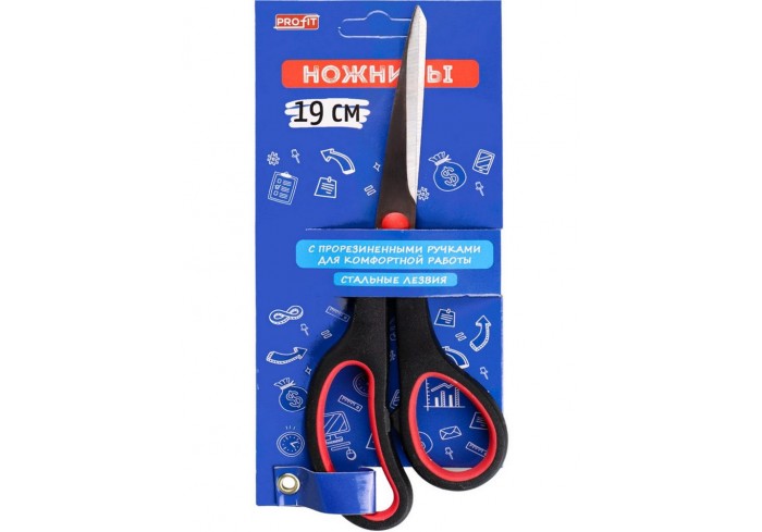 Ножницы длинной 185 мм, с остро заточенными лезвиями, позволяют работать с бумагой и прочими материалами. Ручки классической формы с резиновыми вставк..