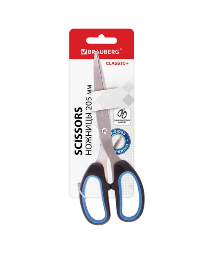 Ножницы BRAUBERG "Classic+", 205 мм, черно-синие, классической формы, резиновые вставки,