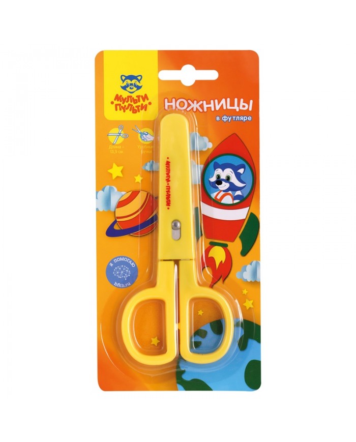 Ножницы для детского творчества «Мульти-Пульти» «Приключения Енота» выполнены из качественной нержавеющей стали. Компактный размер 13,5 см легко помещается в пенале. Закруглённые концы лезвий обеспечивают безопасное использование. Ручки удобной формы изготовлены из высококачественного пластика. Ножницы убраны в футляр. Красочная картонная упаковка дополнена европодвесом. Товар сертифицирован для детей от 3 лет.