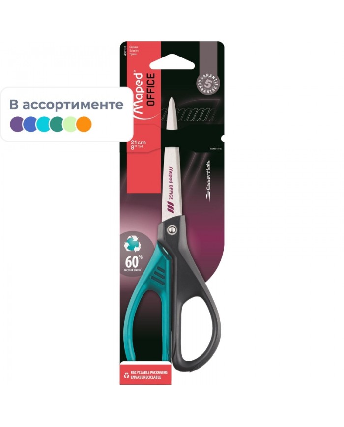 Ножницы Maped Essentials Green Deco 21 см. Лезвия и заклепка из высококачественной нержавеющей стали, симметричные. 2D эргономичные кольца изготовлены..