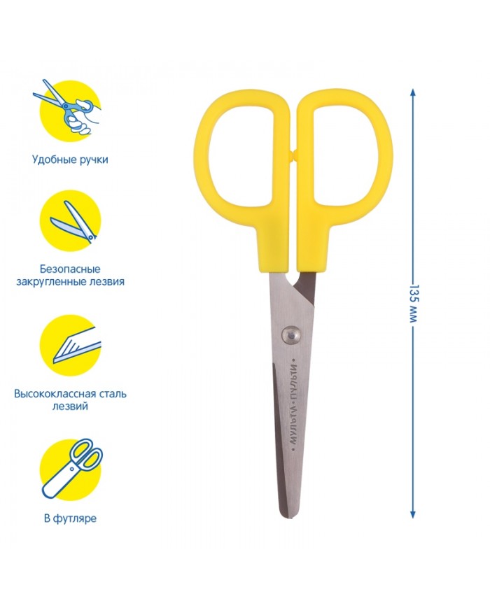 Ножницы ЮНЛАНДИЯ с симметричными ручками имеют удобные отверстия для пальцев, которые позволяют комфортно расположить их в руке. Ребенок без труда смо..