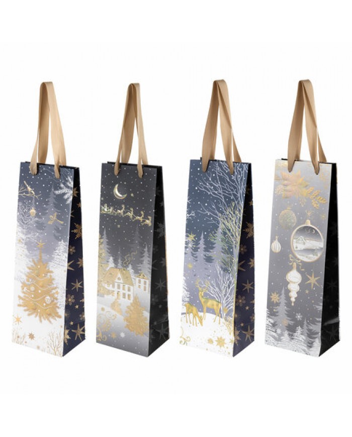 Пакет подарочный под бутылку (1 штука) новогодний 13x36x9 см, "Bottle", ассорти, ЗОЛОТАЯ СКАЗКА,