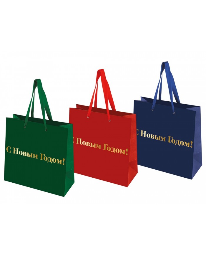 Подарочный пакет новогодний, как и все виды подарочной упаковки, способен придать особый статус подарку. Также он является достаточно практичным изделием, которое может использоваться в повседневной жизни. Изготовлен из крафт-бумаги в трех насыщенных глубоких оттенках синего, красного и зеленого – классические оттенки зимнего праздника, которые придают упаковке яркости и элегантности. Пакеты оснащены ленточными ручками из полиэстера. Размер – 20х8х20 см. С обеих сторон пакеты украшены поздравительной надписью в строгом, лаконичном стиле, а золотистое тиснение фольгой на надписи создаёт эффект дорогой упаковки.
