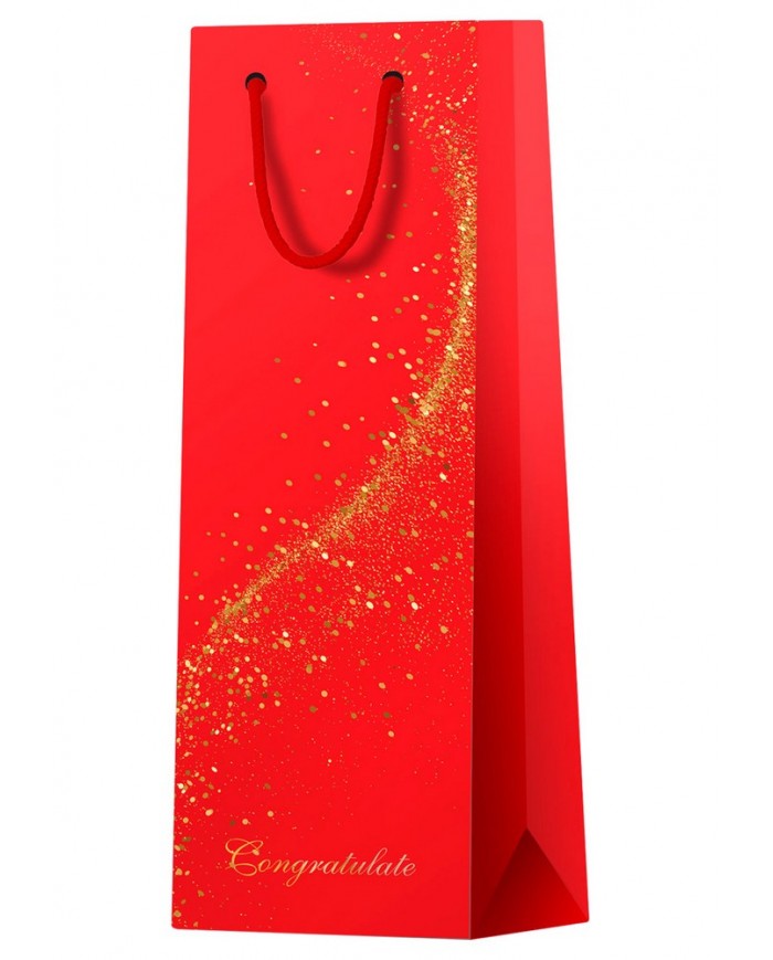 Стильный подарочный пакет MESHU выделит ваш презент из массы других. Размер пакета – 12*36*8,5 см. Продолговатая форма пакета даст возможность положить бутылку шампанского, вина, коньяка и других спиртных напитков. Пакет изготовлен из матового ламинированного картона с отделкой фольгой. Ручки пакета – прочный шнурок. • Материал: ламинированный картон; • Размер пакета: 12*36*8,5 см; • Вид ручек: лента; • Ориентация: вертикальная.
