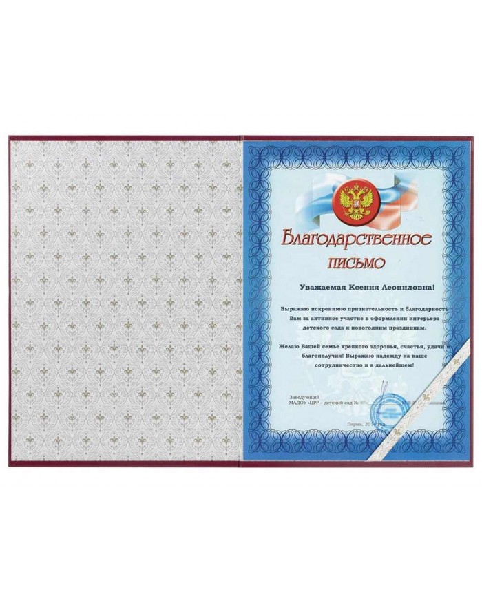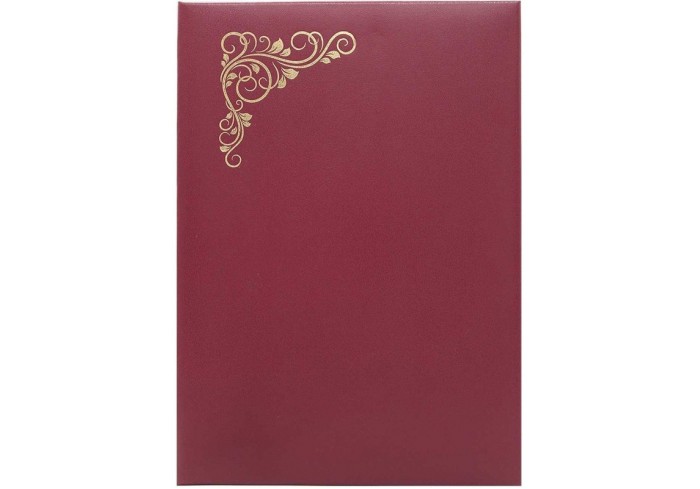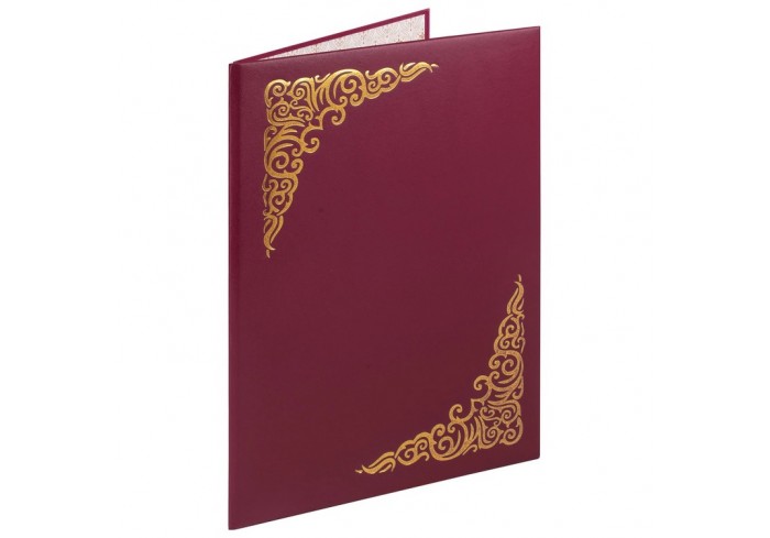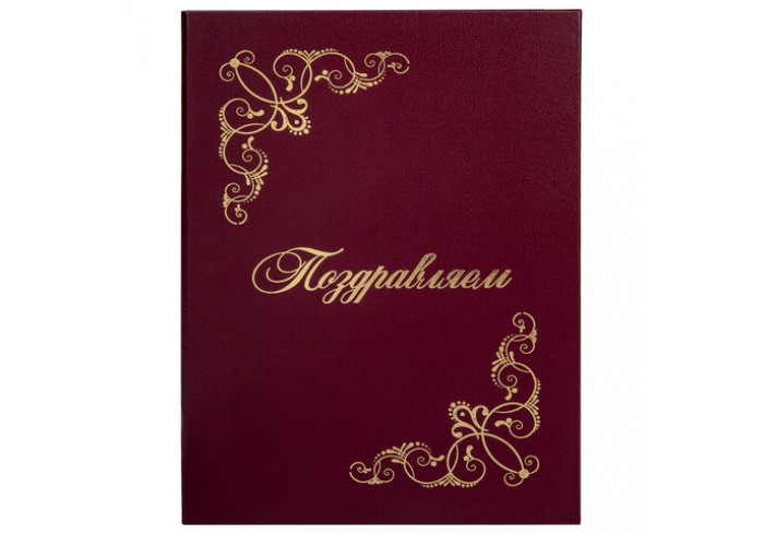 Изготовлена из прочного картона, покрытого бумвинилом. Папка для поздравлений формата А4 выполнена в насыщенном бордовом цвете. На обложке - орнамент ..