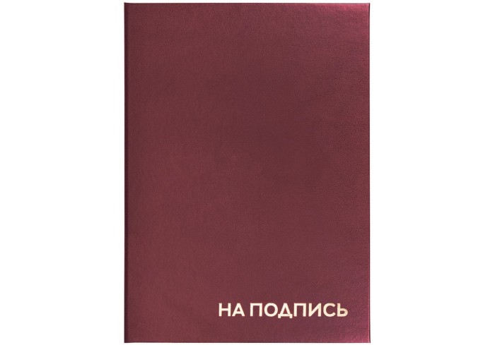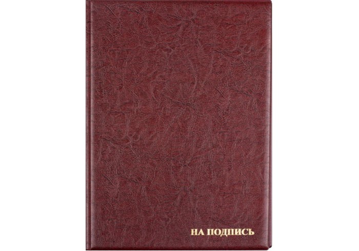 Изготовлена из прочного картона, покрытого бумвинилом. Папка формата А4 для передачи документов на подпись выполнена в насыщенном бордовом цвете. На о..