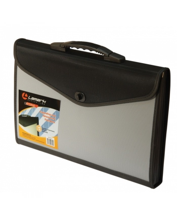 Портфель 13 отделений, замок, укрепленная ручка, карман-визитка, черный/серый