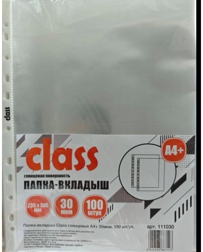 Папка-вкладыш (файлы) Class глянцевые, А4+, 30мкм, 100 шт/уп