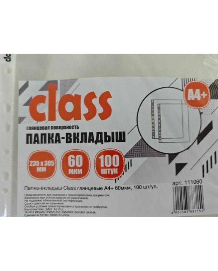 Папка-вкладыш (файлы) Class глянцевые, А4+, 60мкм, 100 шт/уп