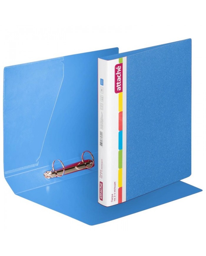 Папка на кольцах рекомендуются как для временного, так и длительного хранения, систематизации, архивирования документов. Такие папки используются в работе офисными сотрудниками различных специальностей, направлений, должностей. Можно использовать для домашних документов.Папка на двух кольцах Attache изготовлена из пластика толщиной 0,7 мм синего цвета. Формат А4. Снабжена механизмом на двух O-кольцах. Диаметр кольца - 35 мм. Крепление кольцевого механизма возможно на корешок папки или на внутреннюю обложку. На внутренней стороне обложки есть прозрачный карман для документов. Корешок шириной 42 мм имеет карман для сменной этикетки. Папка на кольцах вмещает до 250 листов стандартной плотности.
