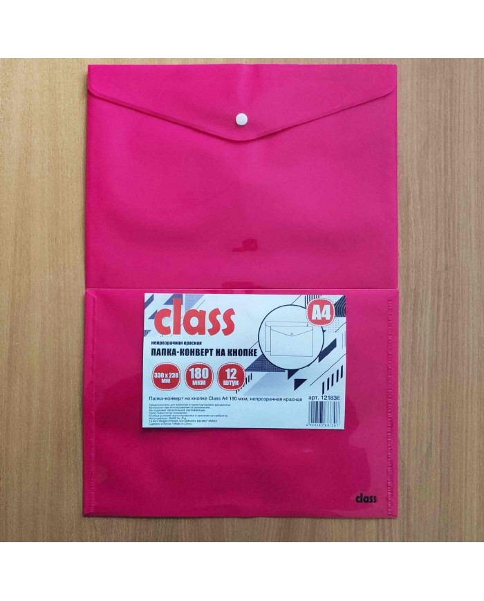 Папка-конверт на кнопке Class А4 180мкм, непрозрачная красная