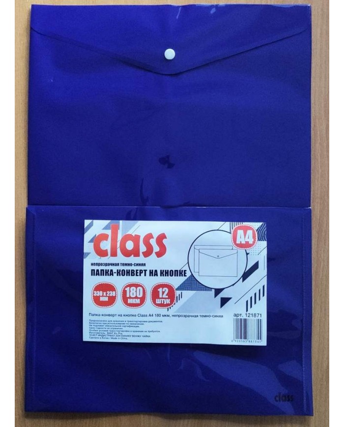 Папка-конверт на кнопке Class А4 180мкм, непрозрачная темно-синяя