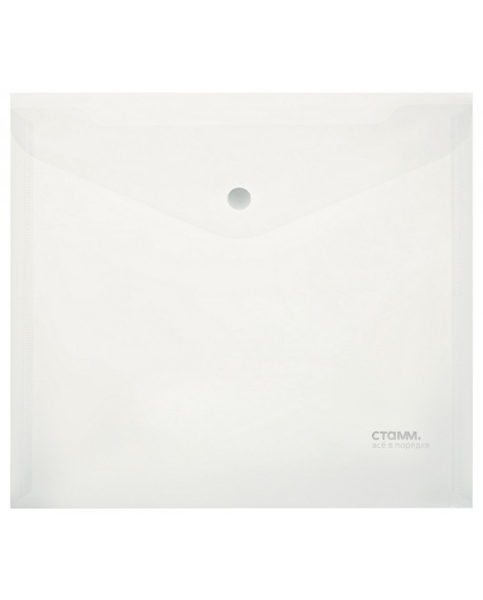 Папка-конверт на кнопке СТАММ А5+, 180мкм, пластик, прозрачная