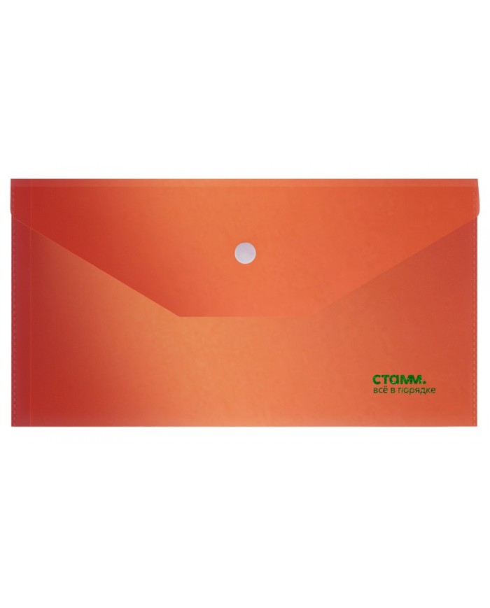 Папка-конверт на кнопке СТАММ "Сияние" С6, 180мкм, пластик, непрозрачная, оранжевый