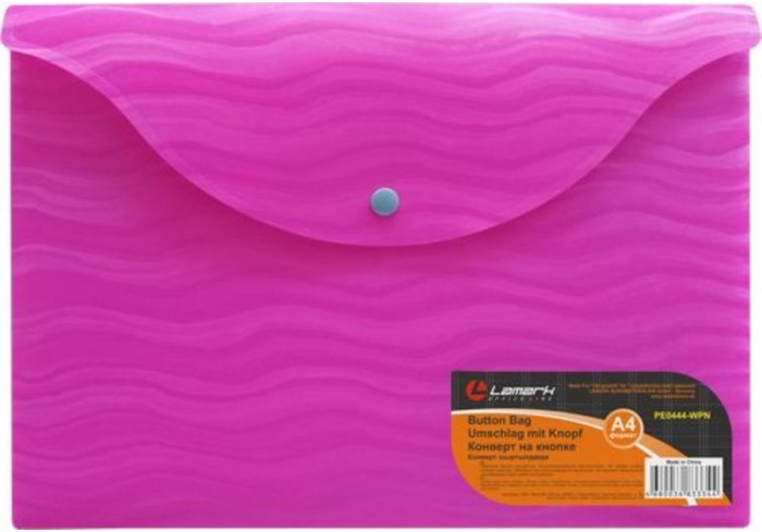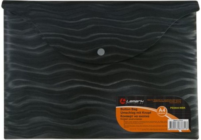 Папка-конверт Lamark на кнопке изготовлена из плотного пластика (высококачественный полипропилен) толщиной 0,4 мм с фактурой “ВОЛНА”, предназначена дл..