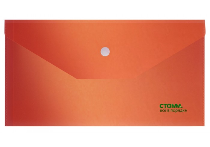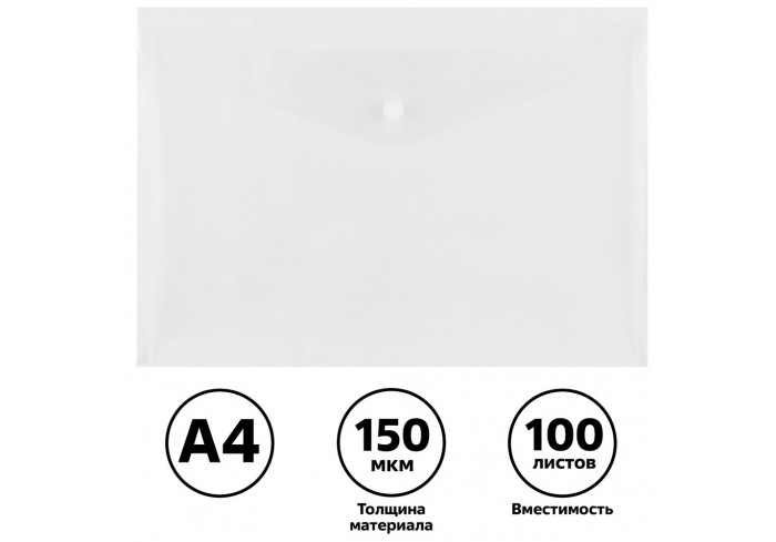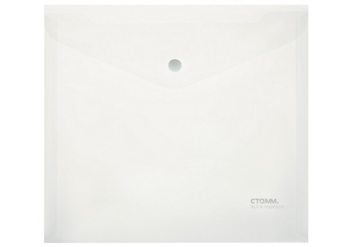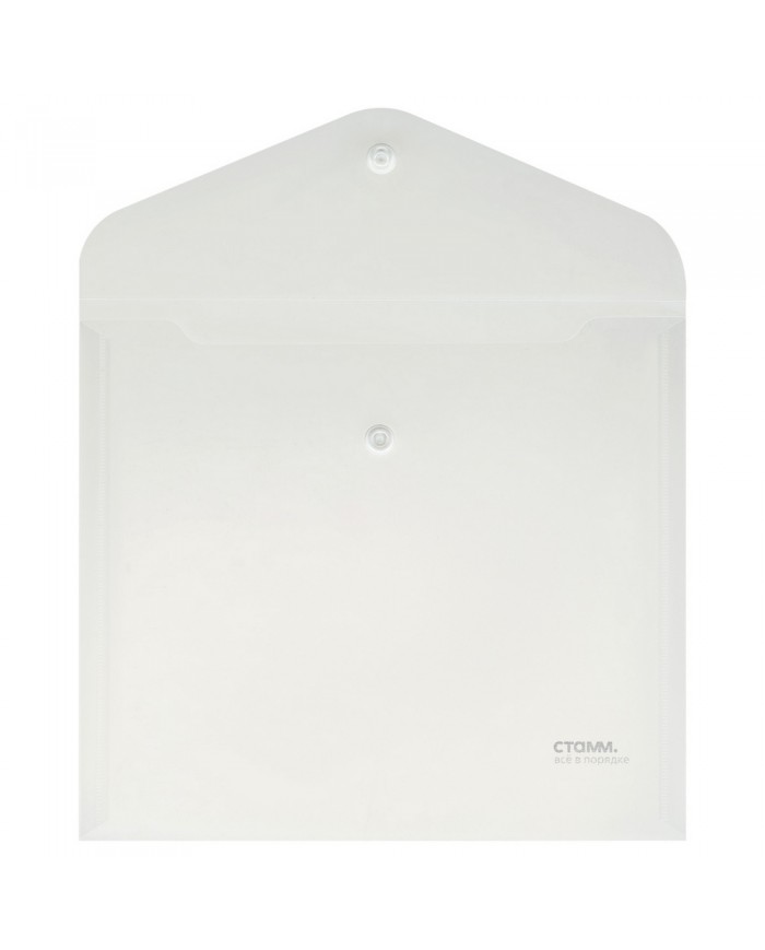 Папка-конверт на кнопке «СТАММ» формата А4 надёжно защищает документы от влаги и пыли. Горизонтальная папка вмещает до 100 листов. Цвет папки – прозра..
