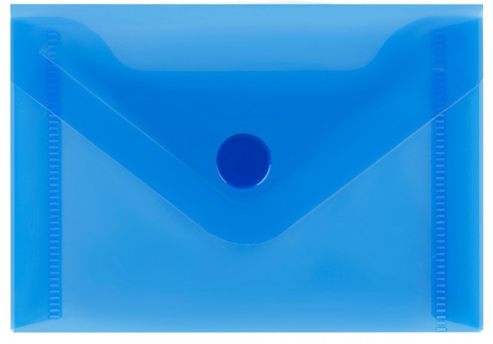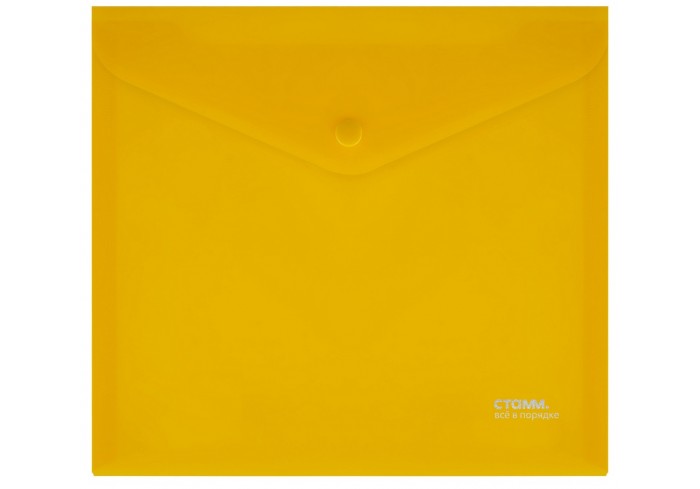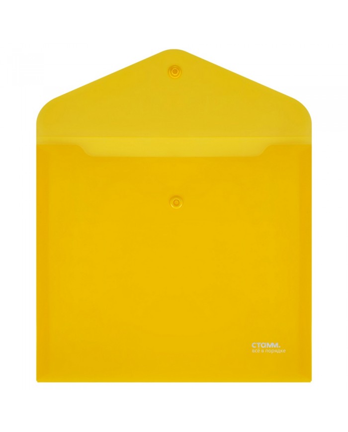 Папка-конверт на кнопке СТАММ формата А5+ изготовлена из качественного полипропилена толщиной 150мкм. Размер изделия составляет 240*215 мм, ориентация..