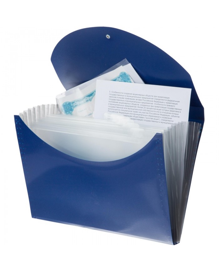 Папка на 13 отделений Berlingo серии Standard размером 350*245*30 мм изготовлена из плотного пластика толщиной 0,7 мм. Способ фиксации –резинка. Папка..