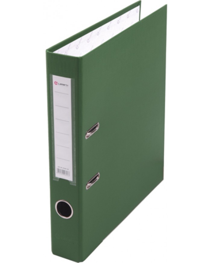 Папка-регистратор LAMARK РР с арочным механизмом изготовлена из плотного картона, с внешней стороны заламинированного полипропиленовой пленкой (РР) с текстурой "лен", внутри оклеена бумагой с алфавитно-цифровым полем для классификации на левой стороне. Прорези на крышке удерживают папку закрытой даже при большом количестве документов. Ширина корешка 50 мм. Вместимость до 300 листов формата А4. Нижние края защищены металлическим кантом, что сохраняет папку при длительной интенсивной эксплуатации. Карман со сменной индексной вставкой на корешке. Цвет зеленый. Поставляются в собранном виде.