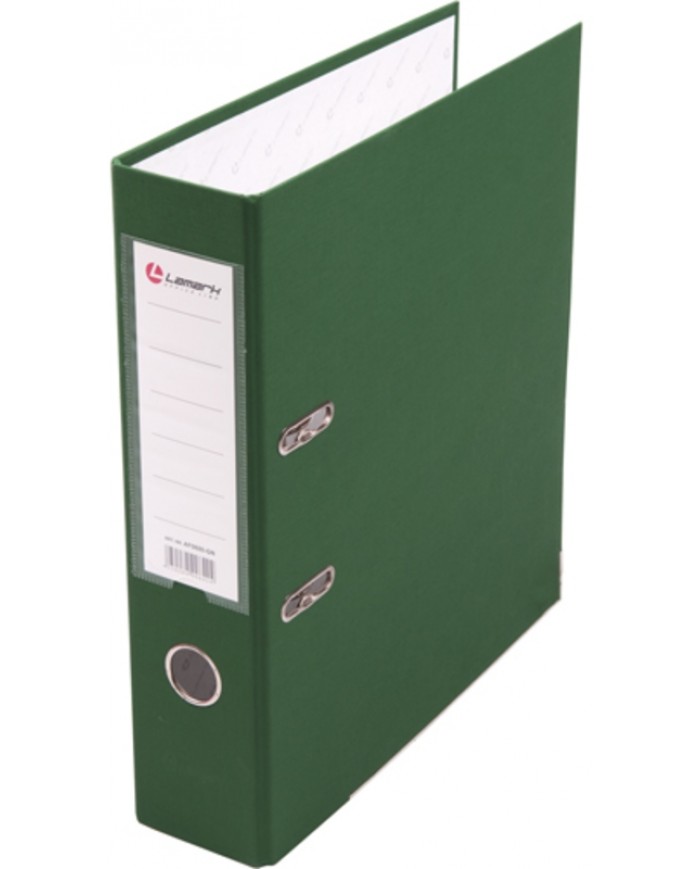 Папка-регистратор LAMARK РР с арочным механизмом изготовлена из плотного картона, с внешней стороны заламинированного полипропиленовой пленкой (РР) с текстурой "лен", внутри оклеена бумагой с алфавитно-цифровым полем для классификации на левой стороне. Прорези на крышке удерживают папку закрытой даже при большом количестве документов. Ширина корешка 80 мм. Вместимость до 480 листов формата А4. Нижние края защищены металлическим кантом, что сохраняет папку при длительной интенсивной эксплуатации. Карман со сменной индексной вставкой на корешке. Цвет зеленый. Поставляются в собранном виде.