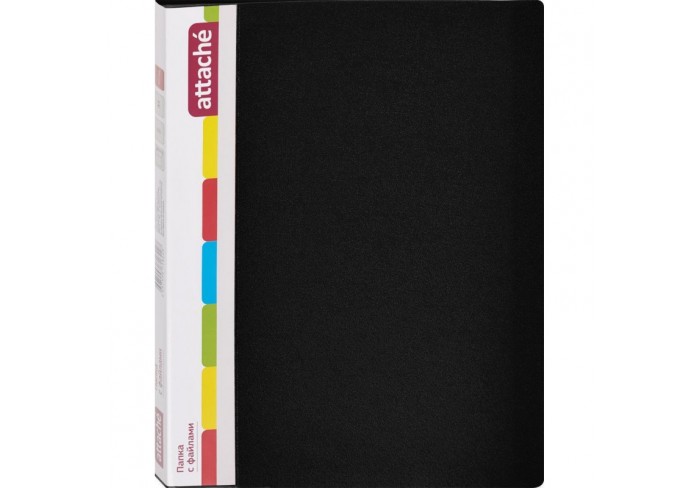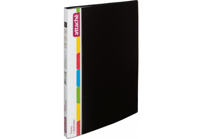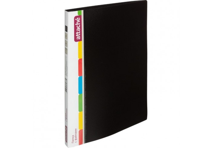 Файловая папка Attache формата А4 изготовлена из пластика (0,7 мм) черного цвета. Имеет 20 несъемных прозрачных вкладышей для удобного хранения и демо..