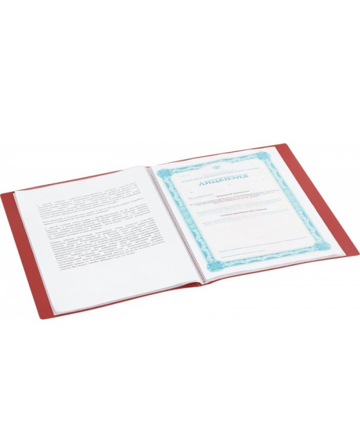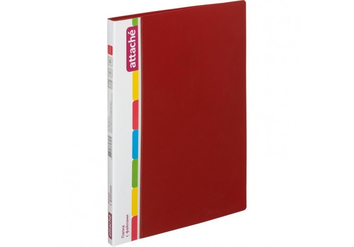 Файловая папка Attache формата А4 изготовлена из пластика (0,7 мм) красного цвета. Имеет 20 несъемных прозрачных вкладышей для удобного хранения и дем..