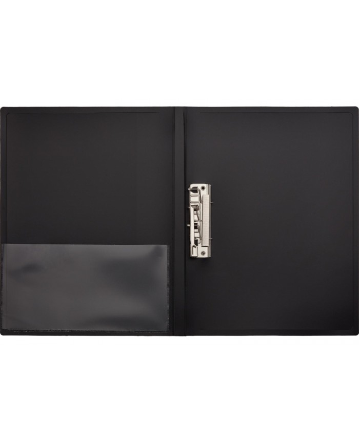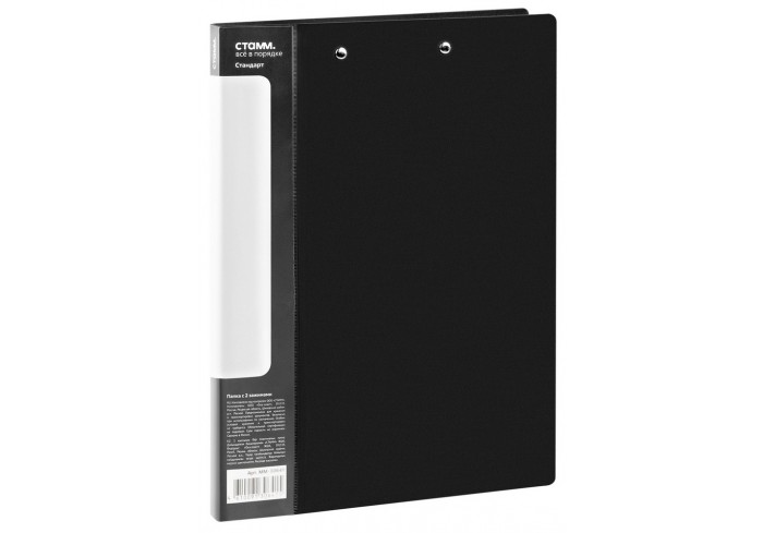 Папка с 2 зажимами «СТАММ» серии «Стандарт» предназначена для хранения бумаг формата А4. Цвет папки – чёрный. Папка изготовлена из качественного полип..