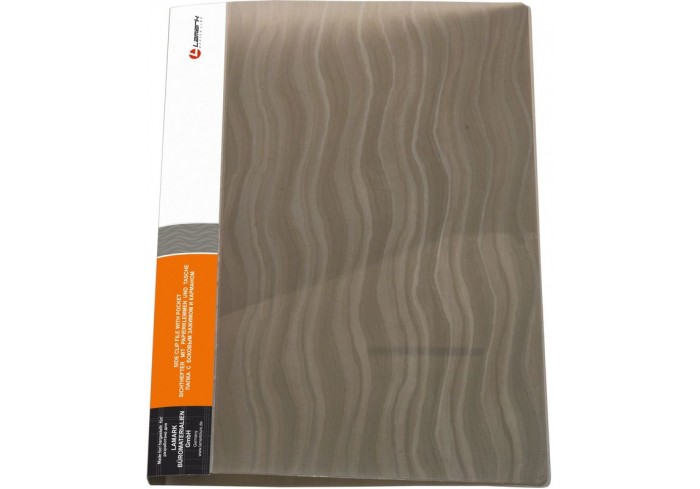 Папка с боковым металлическим зажимом Lamark изготовлена из пластика толщиной 0,60 мм, высококачественный полипропилен РР, цвет серый полупрозрачный с..