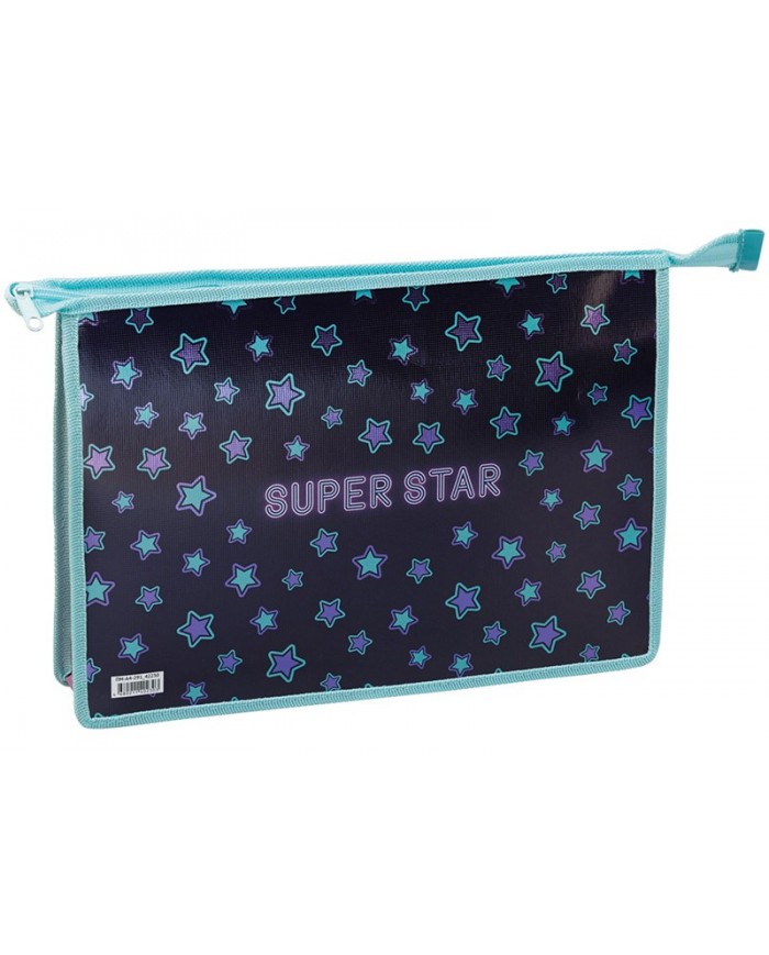 Папка для тетрадей 1 отделение, А4, ArtSpace "Super Star", ламинированный картон, фольга, на молнии