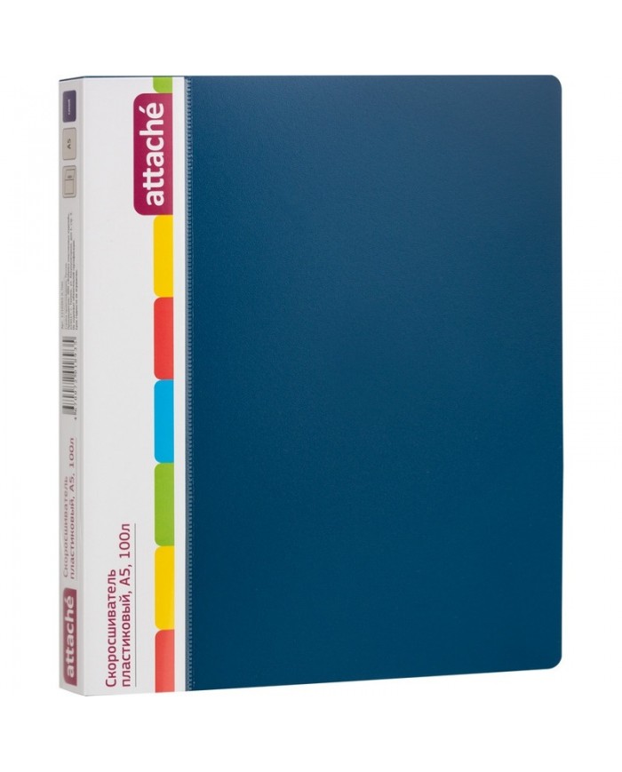 Папка-скоросшиватель Attache формата А5 изготовлена из пластика толщиной 0,7 мм. Цвет синий. Оснащена пружинным механизмом подшивания. Ширина корешка ..