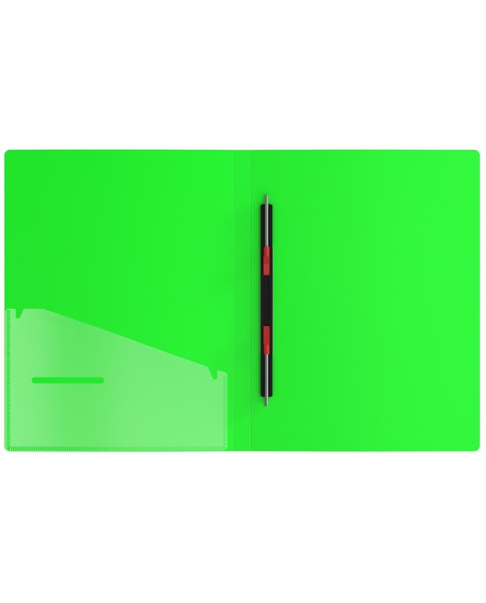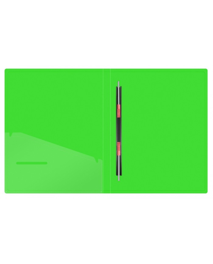 Папка с пружинным скоросшивателем Berlingo Neon размером 310*235*17 мм изготовлена из плотного пластика толщиной 1,0 мм с текстурой «рельефные треугол..