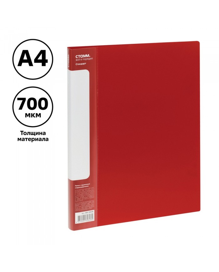 Папка с пружинным скоросшивателем «СТАММ» серии «Стандарт» предназначена для сшивания и хранения бумаг формата А4. Цвет папки – красный. Папка изготов..