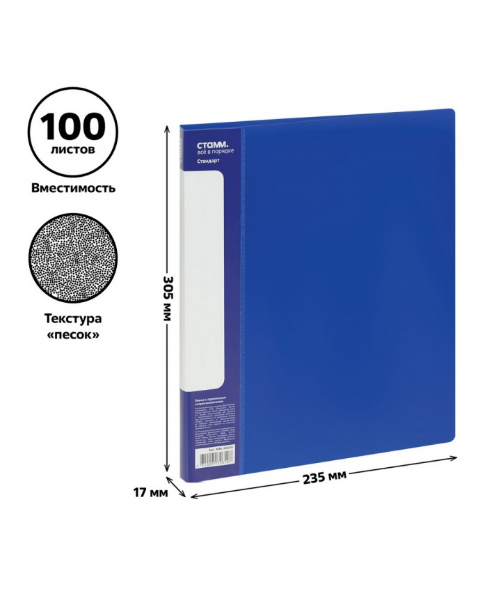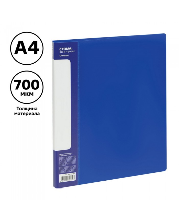 Папка с пружинным скоросшивателем «СТАММ» серии «Стандарт» предназначена для сшивания и хранения бумаг формата А4. Цвет папки – синий. Папка изготовле..