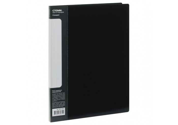 Папка с пружинным скоросшивателем СТАММ «Стандарт» предназначена для сшивания и хранения бумаг формата А4. Цвет папки – чёрный. Папка изготовлена из к..