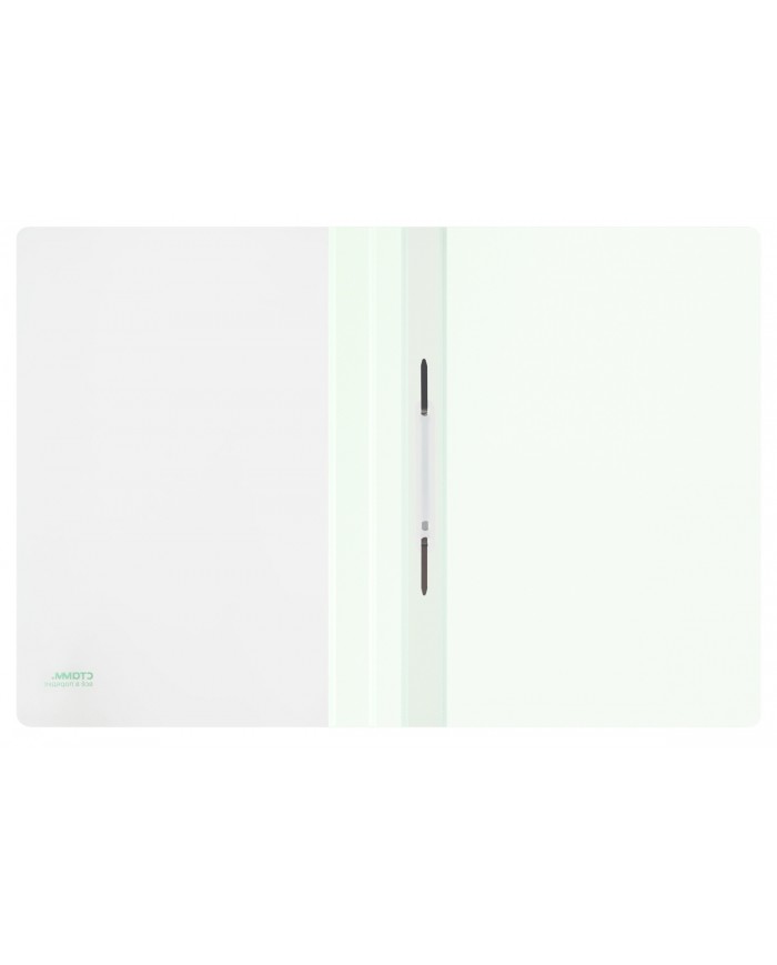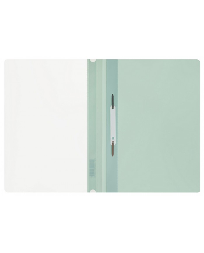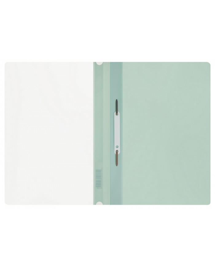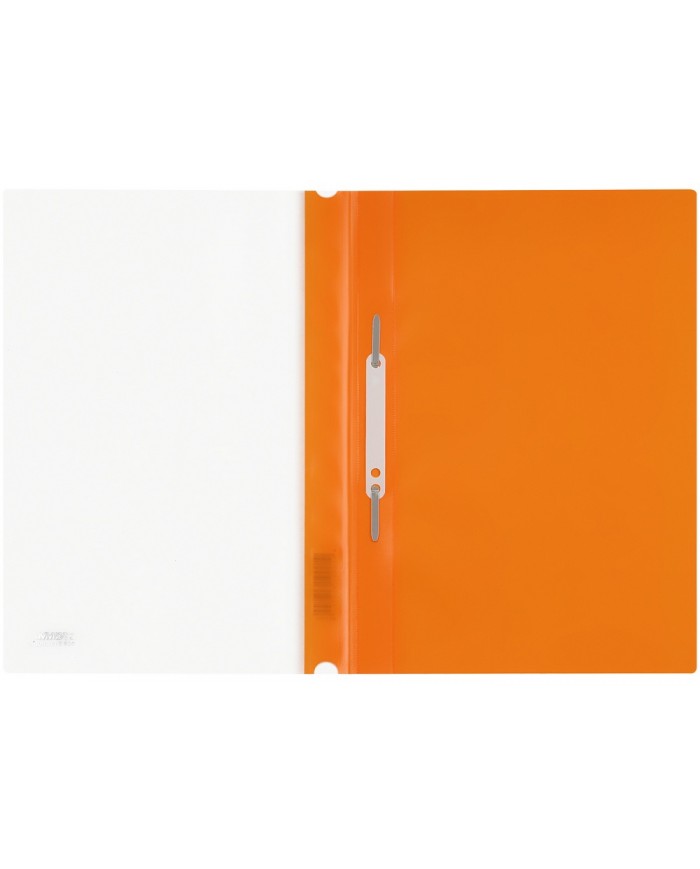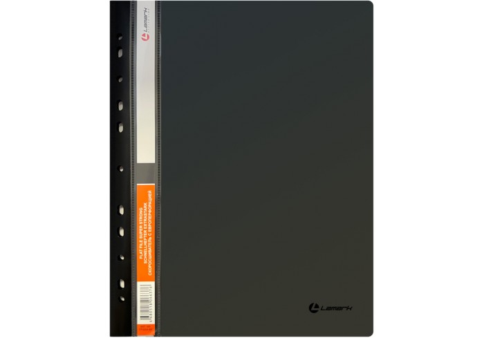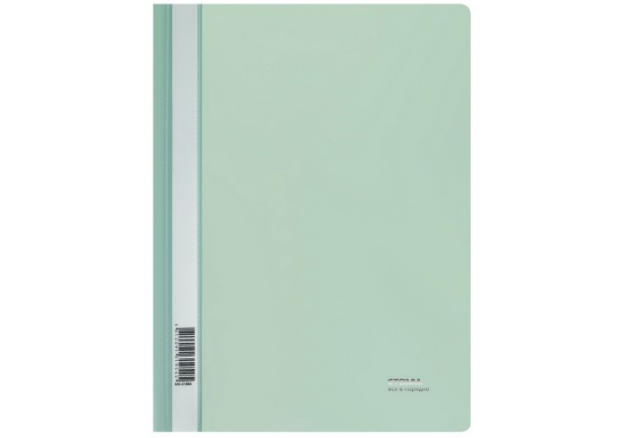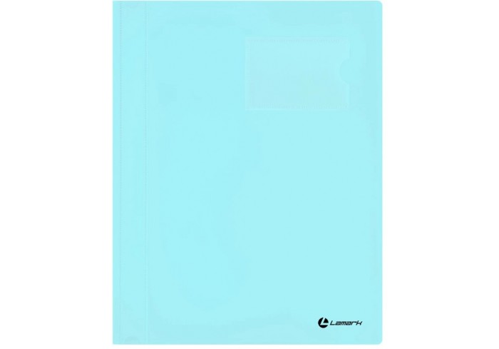 Папка из мягкого пластика с верхним прозрачным листом. Снабжена скоросшивателем. На лицевой стороне находится карман с полосой для указания содержания..