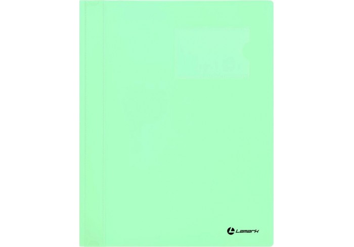 Папка-скоросшиватель Lamark с непрозрачным верхним листом. Толщина пластика 0,30 мм. Механизм заламинирован. Карман внутри. Цвет зеленый. Для докуме..