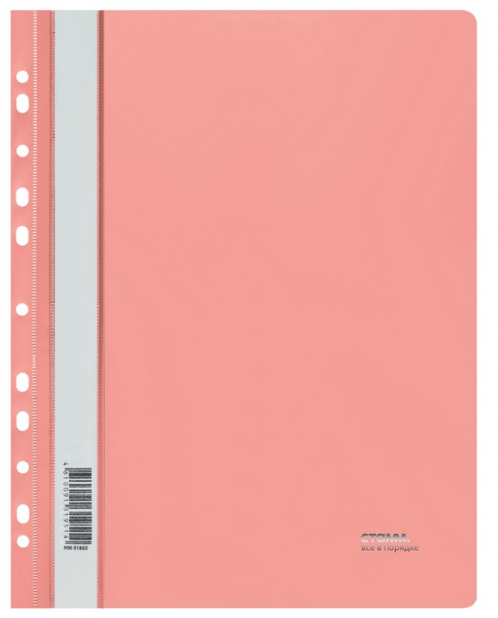 Папка-скоросшиватель пластик. перф. СТАММ "Акцент" А4, 180мкм, коралловая с прозр. верхом