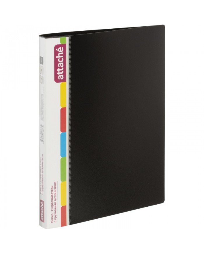 Скоросшиватель пластиковый с пружинным металлическим механизмом Attache A4 черный, плотность 0,7мм,