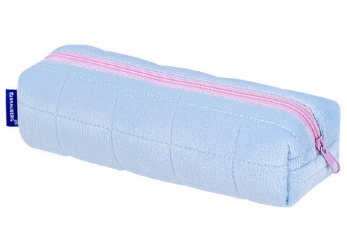Пенал BRAUBERG, мех, 21х6х6 см, голубой/розовый,
