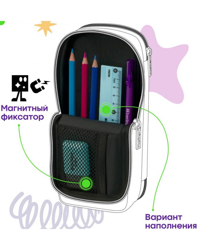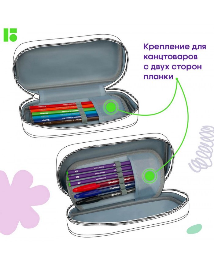Пенал-футляр школьный мягкий Berlingo размером 205*80*55 мм имеет два отделения. Материал лицевой и внутренней поверхности – полиэстер. На откидной ча..