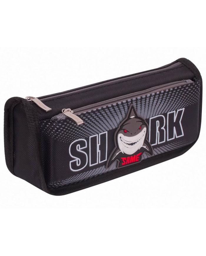 Пенал ЮНЛАНДИЯ, 2 отделения, полиэстер, "Shark", черный, 21х6х9 см, 270271