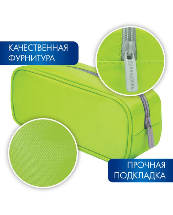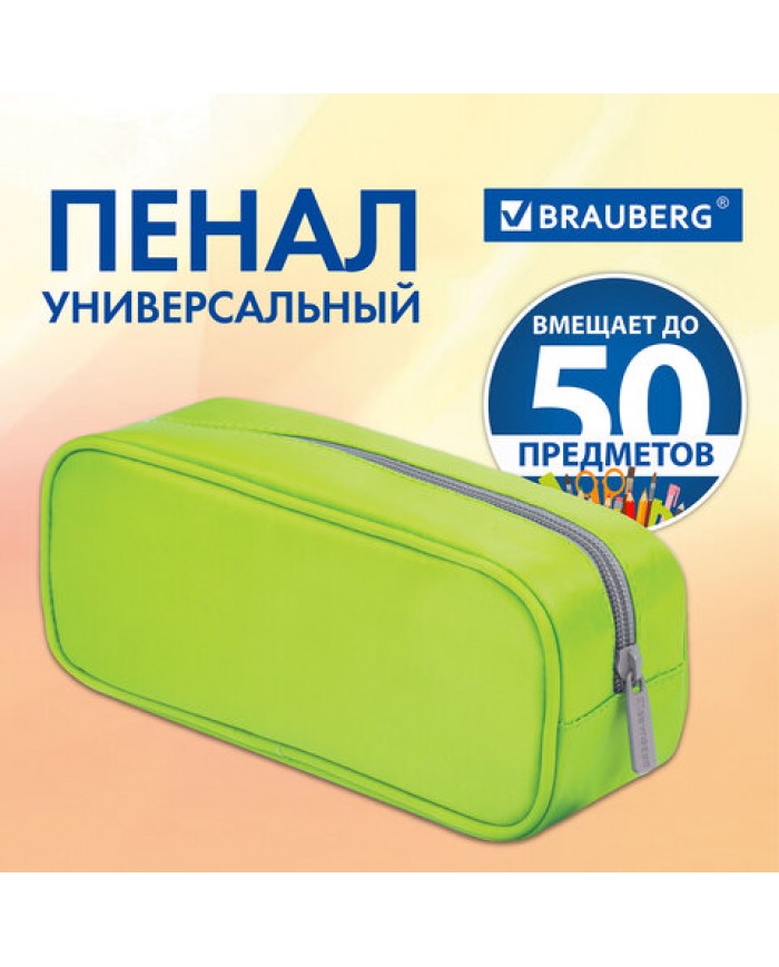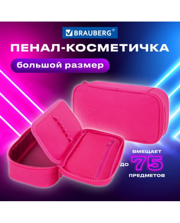 Пенал-косметичка BRAUBERG увеличенного объема выполнен из прочного полиэстера. Надежная молния оснащена металлическим бегунком. Пенал вмещает до 80 ка..