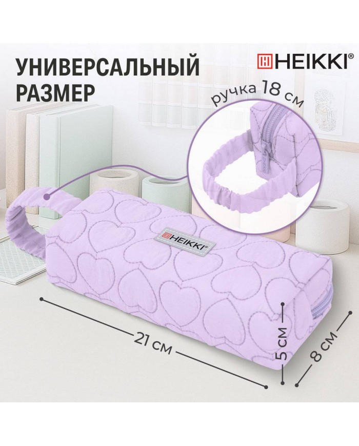 Пенал прямоугольной формы с одним вместительным отделением и органайзером внутри. Выполнен из плотного полиэстера, внутри есть подкладка, которая допо..