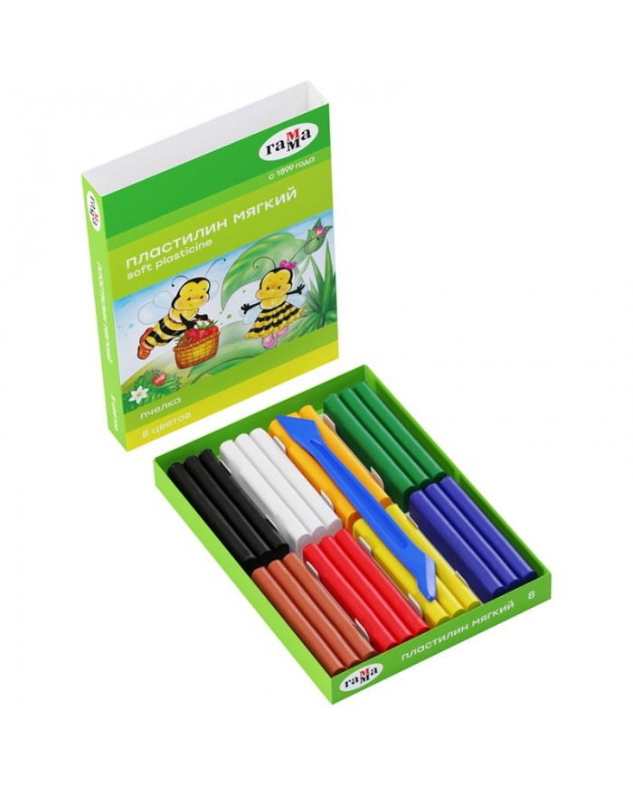Набор воскового пластилина Гамма серии «Пчёлка» 12 цветов. Вес бруска — 15 г. Разработан специально для детей от 3 до 6 лет. Благодаря высокому содерж..