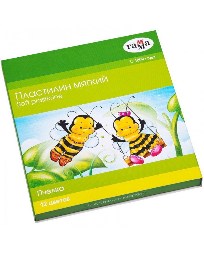 Пластилин "Пчелка", 12 цветов, восковой, со стеком, 180г, картон, европодвес, Гамма