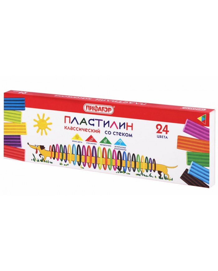 Пластилин классический ПИФАГОР "Веселая такса", 24 цвета, 360 г, СО СТЕКОМ,