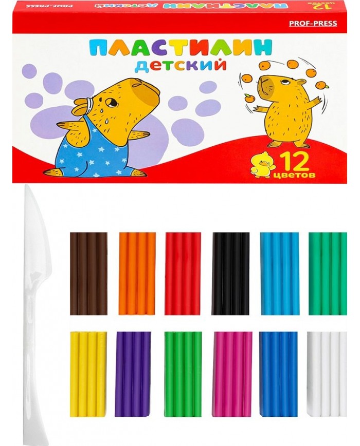 Пластилин 12 цв. Капибара , 180г. Картон.коробка, стек