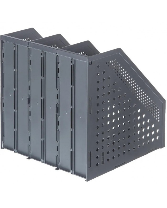 Складной вертикальный накопитель Deli темно-серого цвета для хранения каталогов, бумаг, документов и папок формата А4. Выполнен из прочного и высокока..
