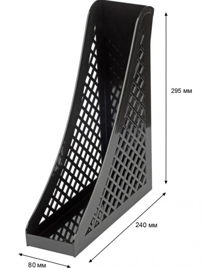 Лоток вертикальный для бумаг А4 Attache 80 мм пластиковый чёрный Вертикальный накопитель Attache выполнен из непрозрачного чёрного пластика. Лаконичный дизайн лотка добавит строгости Вашему рабочему столу. Накопитель позволяет удобно хранить документы, папки и разнообразную печатную продукцию формата А4. Имеет 1 отделение шириной 90 мм. Размеры изделия (ДxШxВ): 240x80x295 мм. Вес: 295 г. Обладает устойчивой конструкцией, благодаря которой является удобным для хранения объёмных документов. Этикетки для маркировки в комплект поставки не входят. Товар поставляется в собранном виде.